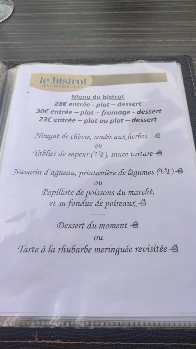 Le Bistrot Des Apothicaires offers a well-curated menu that highlights the best of French cuisine with a rustic yet refined touch. Among its standout dishes is the Tête de Veau, a classic French delicacy that showcases tender, slow-cooked veal head, perfectly complemented by its rich flavors. For cheese lovers, the Nougatine de Chèvre provides a delightful contrast of creamy goat cheese and sweet, nutty elements, creating a memorable appetizer. For dessert, the Café Gourmand is a treat, featuring a selection of miniature sweets paired with a perfectly brewed espresso. The menu also includes the slow-braised Gigot de 7h, a leg of lamb cooked for seven hours to achieve melt-in-your-mouth tenderness, making it a must-try for those seeking a heartwarming and indulgent dish. The combination of these flavorful dishes, along with the intimate ambiance of the restaurant, ensures a memorable dining experience.